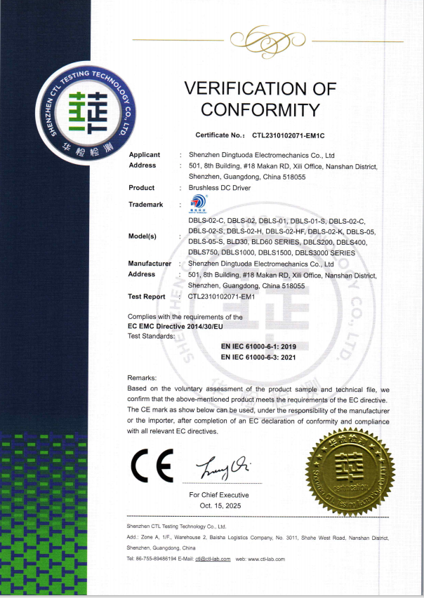 無(wú)刷驅(qū)動(dòng)器CE證書(shū)